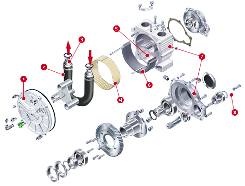 A - The rotor turns inside the tightly fixed separator. Which is held in the pump housing filled with lubricant. The separator divides the housing into two completely enclosed areas. |
